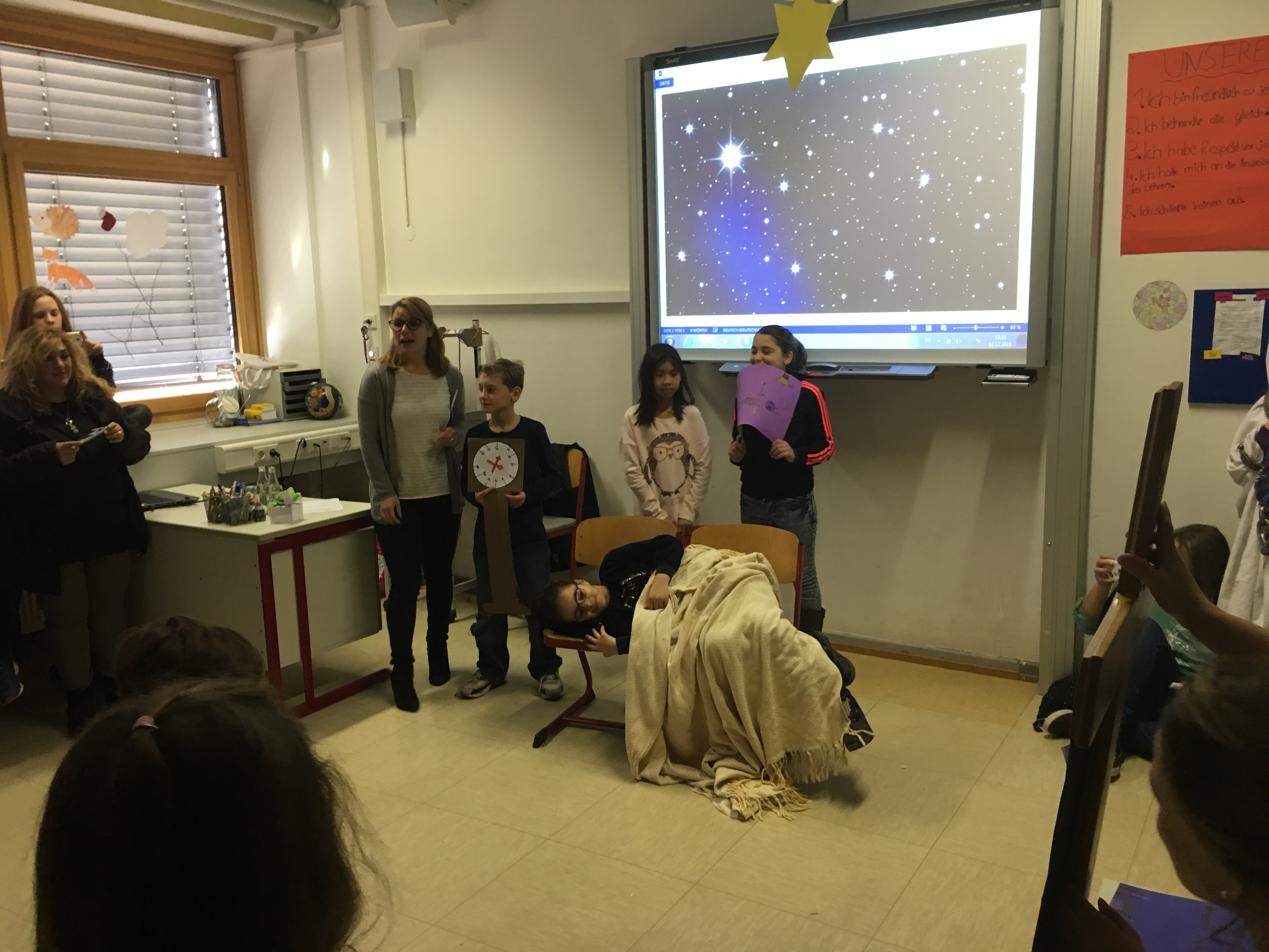 Die einzelnen Fachbereiche wurden zum einen in den Fachräumen vorgestellt: So konnten die Kinder z. B. chemische und physikalische Experimente durchführen, mit selbstgebauten Robotern experimentieren, oder im Werkraum einen Schlüsselanhänger sägen. Zum anderen präsentierten sie sich in Form von Aufführungen.