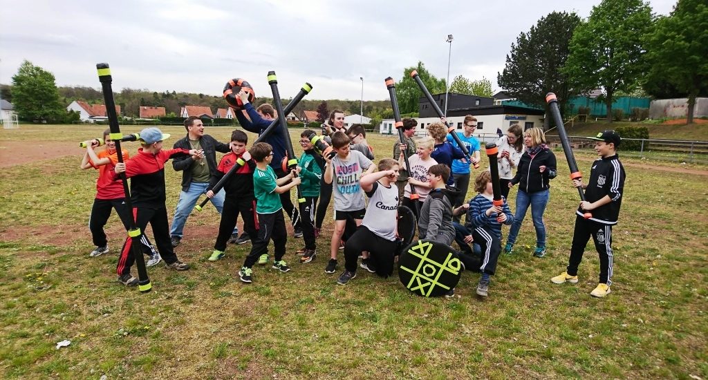 Bereits am Samstag, 06.05.17 fand an der unserer Schule der erste von 2 Jugger-Tagen in diesem Schuljahr statt. Der CVJM St. Ingbert e.V. veranstaltete erneut in Kooperation mit der Stadtjugendpflege St. Ingbert, dem Saarpfalz-Kreis, den Evangelischen Kirchengemeinden Hassel und Rohrbach und unserer Schule das Event. So trafen sich auch in diesem Jahr wieder Jugger-Interessierte um die „Pompfen“ sprechen zu lassen. Jugendliche, die bereits daran teilgenommen haben, wissen wovon die Rede ist. Auch etliche Schüler unserer Schule aus den Klassenstufen 5-7 hatten irre Spaß an der Kontaktsportart, bei der trotz allem Kampf und Siegeswille Fairness an höchster Stelle steht.