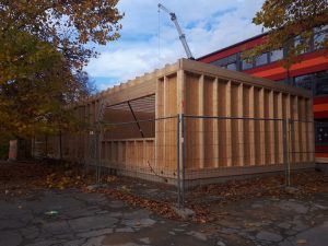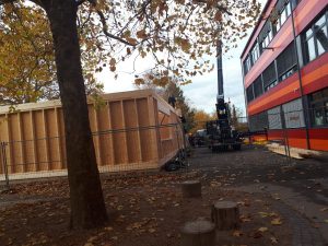 Im Moment ist auf dem Schulhof viel los, die neuen Klassensäle werden gebaut. Auf Grund mangelnder Klassensäle sollen die Zehntklässler in den Containern unterkommen. Es ist spannend, den Bauarbeitern beim Arbeiten zuzusehen. Die Arbeiten gehen schon seit zwei Wochen und sollen in der ersten Dezemberwoche abgeschlossen werden, damit die Zehntklässler einziehen können.