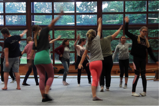 Dort konnten wir uns wirklich näher kennenlernen und die Aufführung nahm rapide Gestalt an. Von nun an ging es auch rasant in Richtung Präsentation auf der Theaterbühne am 30.05.2018. Ein Probentag hinter dem eisernen Bühnenvorhang, Generalprobe und Technikprobe auf der Hauptbühne des Theaters und schon hieß es Vorhang auf! für das deutsch-französische Tanz-Theater-Ensemble. Im Publikum: Eltern, Geschwister, Lehrkräfte und Schulleitungen aus Deutschland und Frankreich.